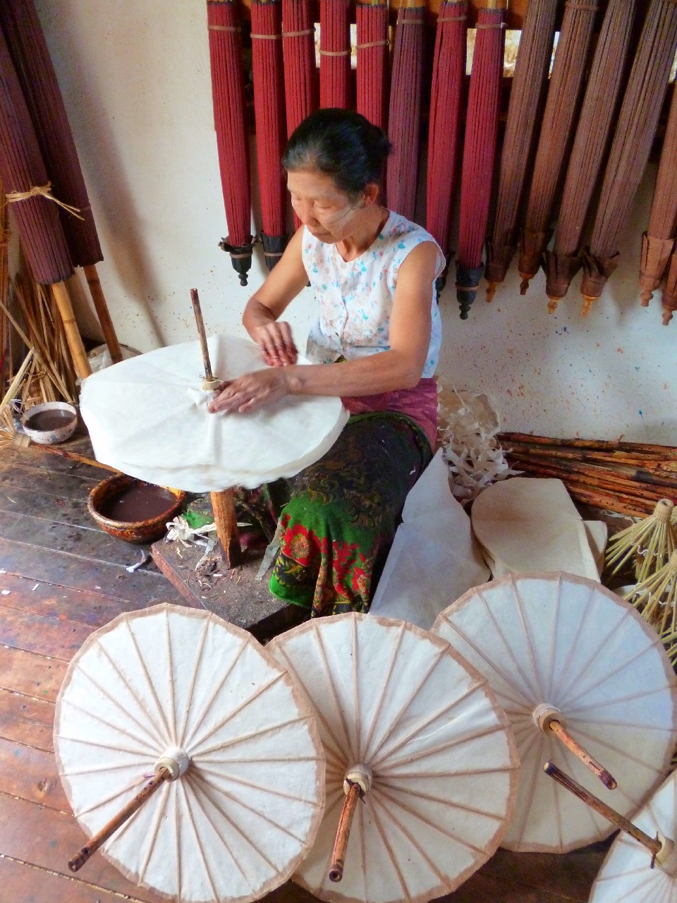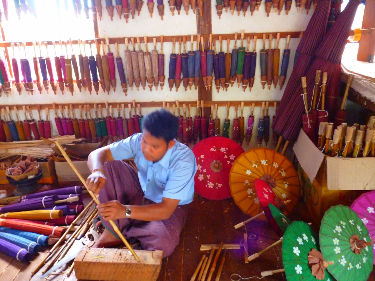En Pindaya ademas de ver las cuevas , pudimos ver como se elaboran las famosas sombrillas de papel.