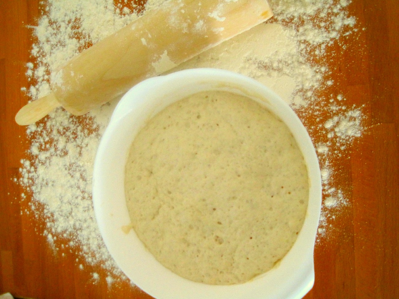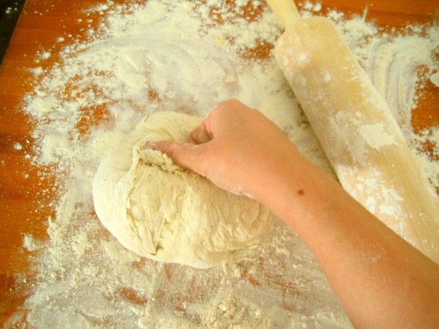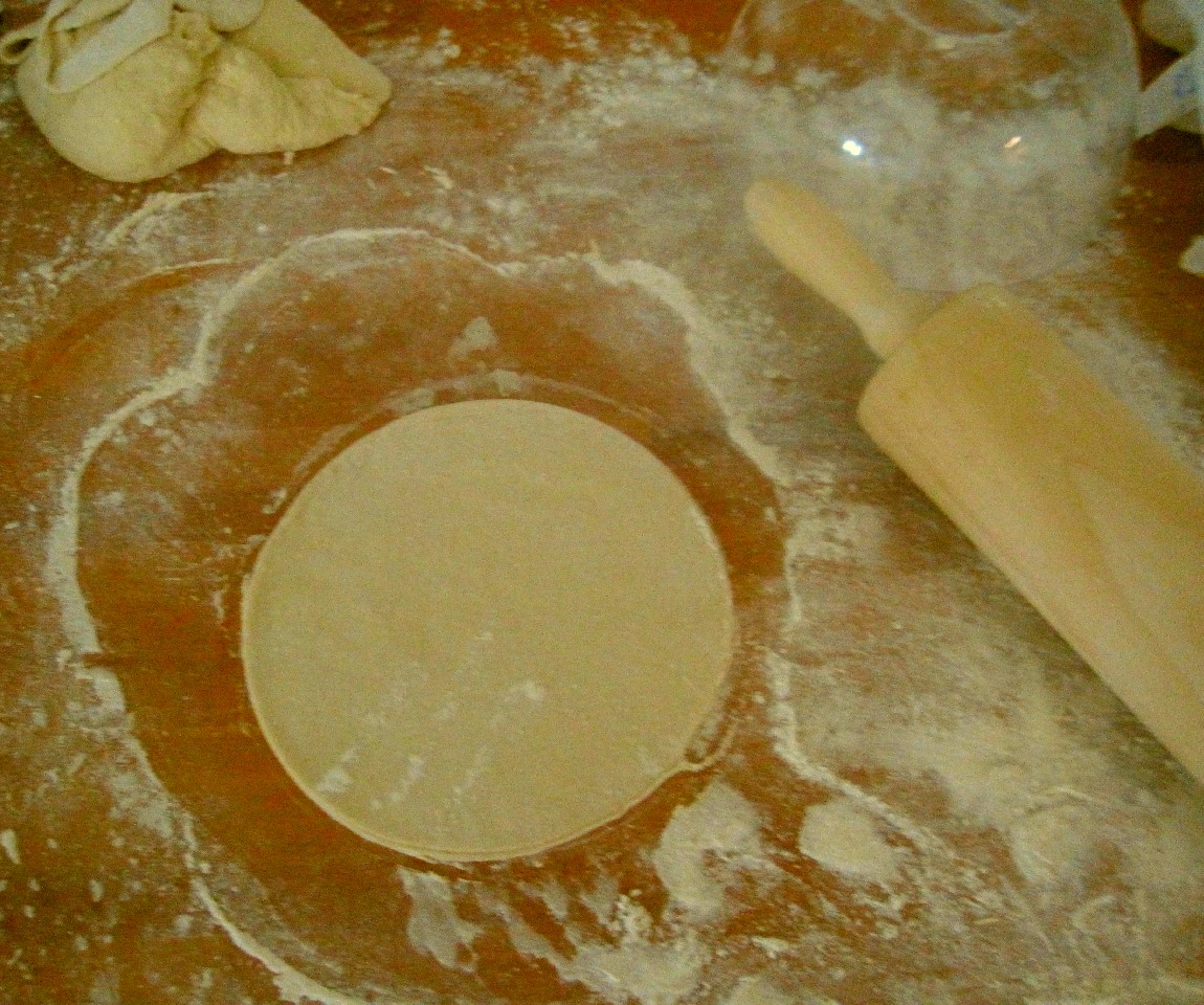 | Con las manos y la superficie de trabajo llenas de harina, trabajar la masa hasta que quede elástica .Con el rodillo aplanar hasta que tenga el grosor que desees. |
