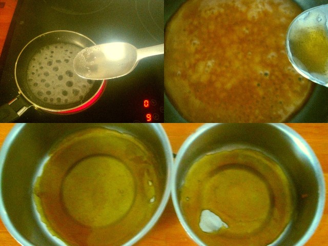 | Lo primero preparar el Caramelo, ¿Como? En una sarten ponemos azúcar y agua y removemos hasta que adquiera tono dorado; rápidamente vertimos el caramelo en el molde que vayamos a utilizar para el flan. |