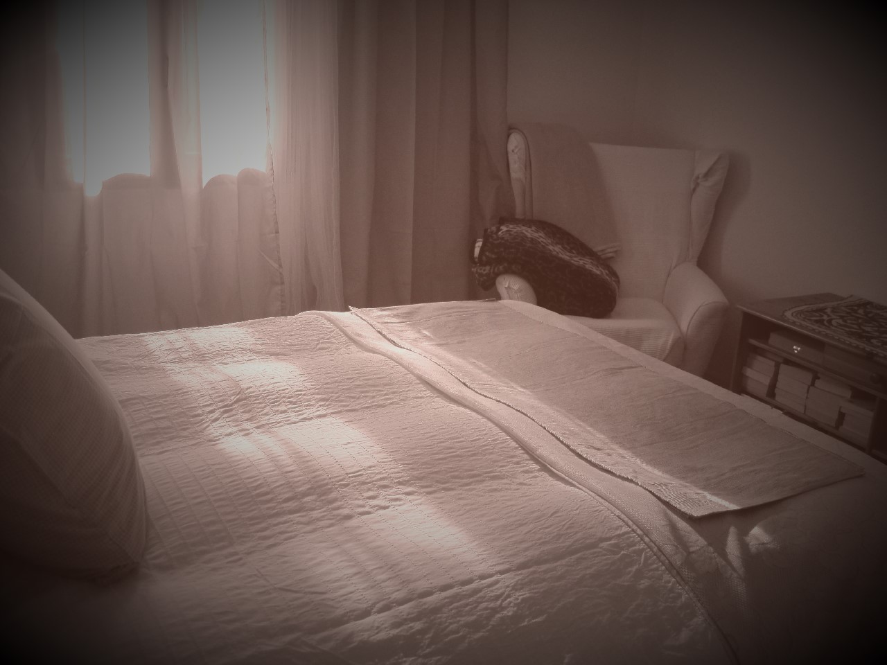 | Mi cama, mi sofá reciclado y re-tapizado con colchas del Ikea, mis libros….mis tesoros. |