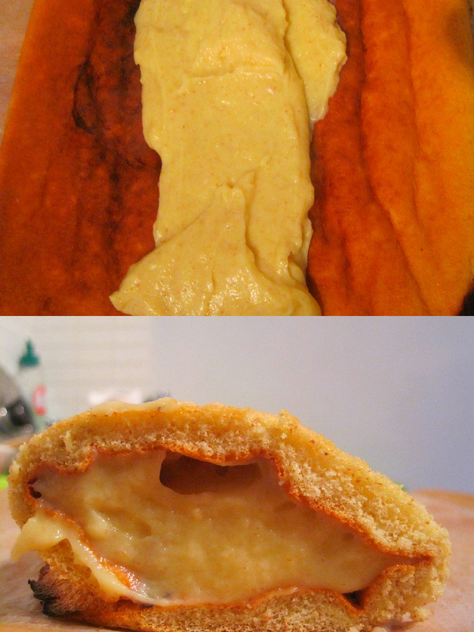 | Podéis hacer glasa, quemarlo con azúcar o la opción que he elegido yo, que es darle una capita de chocolate (derretir chocolate al microondas con un chorrito de leche) |
