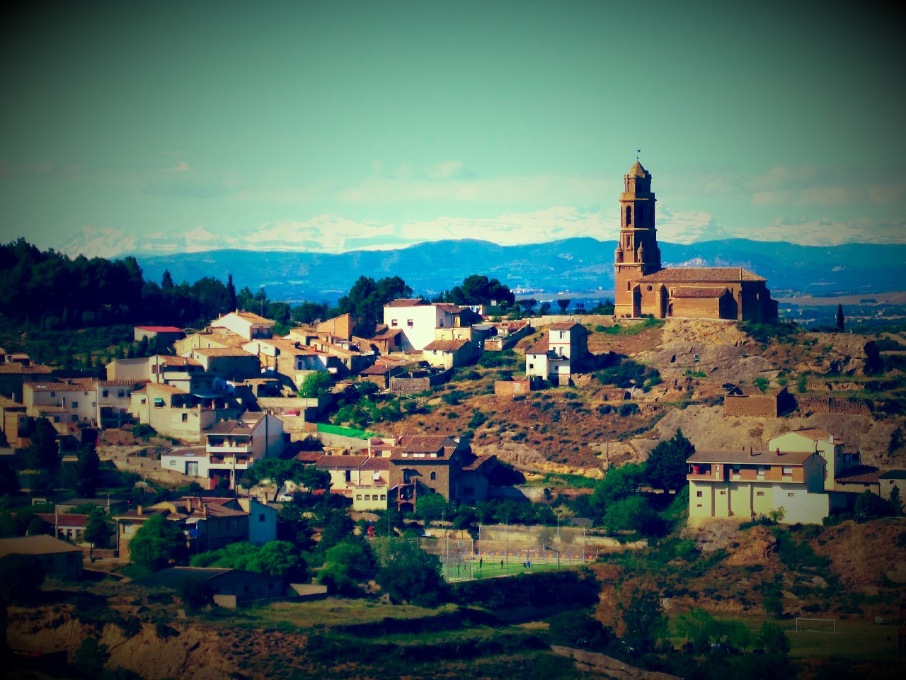 | Vista de Castejón del Puente, desde las trincheras. |