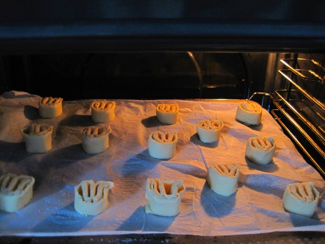 | Poner en el horno, a 180 grados, durante diez minutos, a mitad cocción , darle la vuelta para que queden doradas por los dos lados |