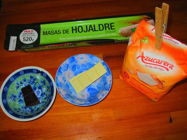 | Masa de hojaldre, azúcar y chocolate al gusto |