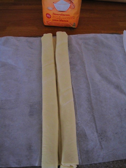 | Darle suavemente con el rodillo, para que quede el azúcar pegada a la masa |