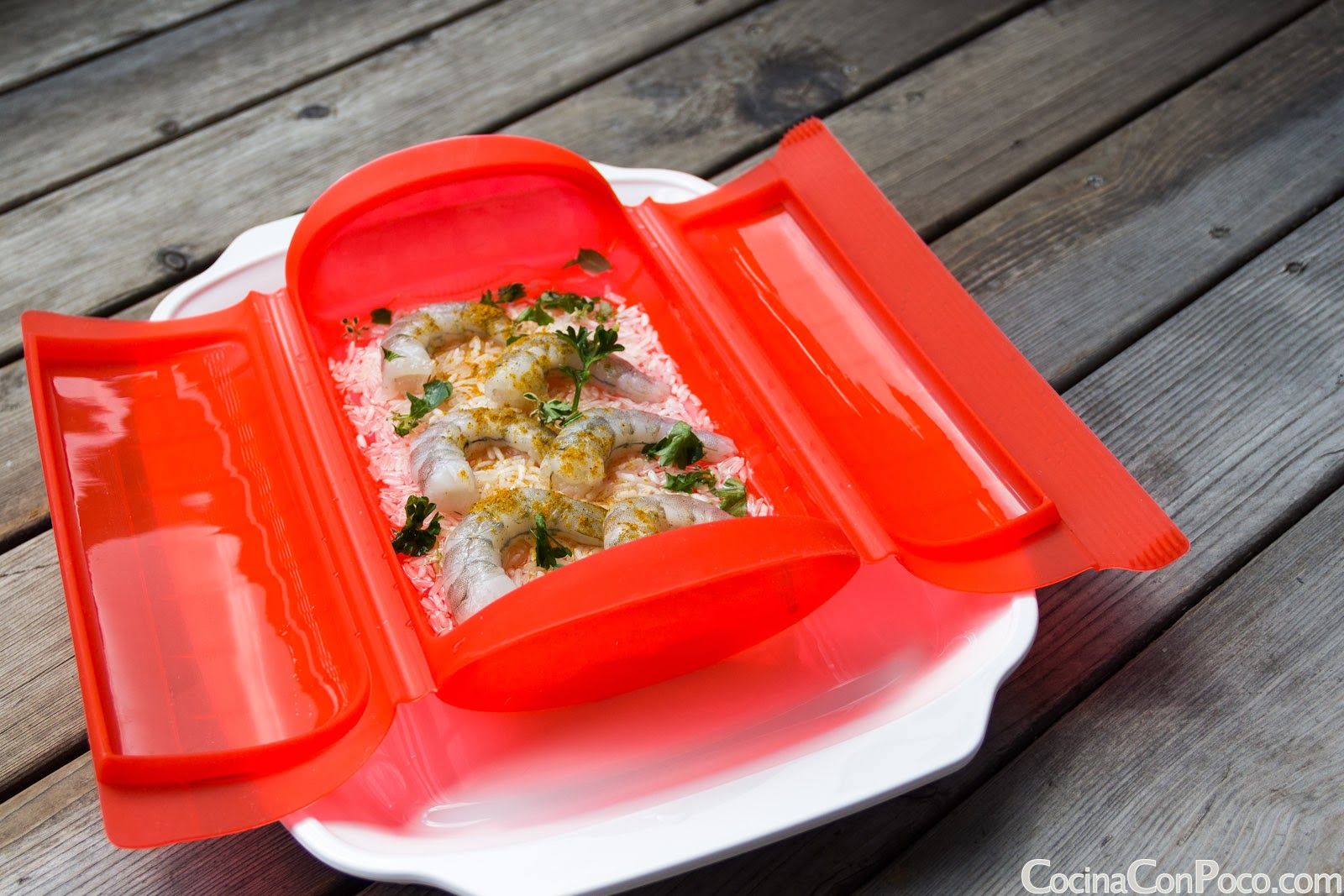 Y resulta, que lo último de lo último, lo más de lo más, son los moldes de silicona, para cocinar al vapor. Una especie de estuche, que puedes utilizar en horno y microondas.