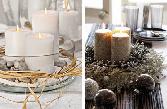 | Velas, piedras, mas sal, cordel, un recipiente redondo, bolas del árbol, cualquier cosa es valida para crear un centro bonito. |
