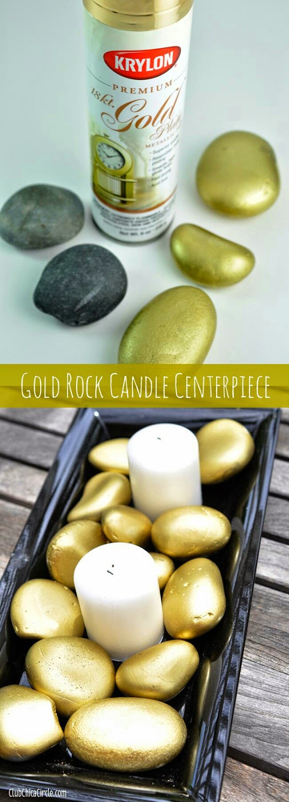 | Precioso y fácil. Piedras pintadas con spray dorado. Velas y una bandeja. Y queda la mar de resultón!! |