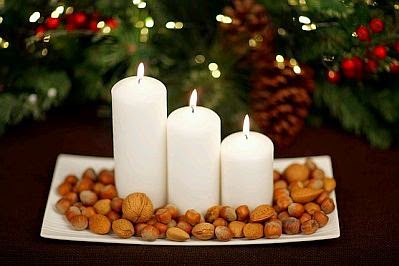 | Velas, piedras, mas sal, cordel, un recipiente redondo, bolas del árbol, cualquier cosa es valida para crear un centro bonito. |
