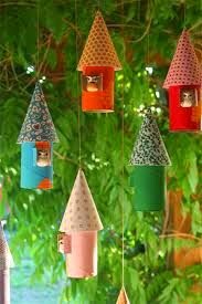 | Casitas de búhos, con rollo de cartón, cartulina para el tejado, temperas, tijeras y pegamento.Lo primero pintar el rollo de cartón, hacer un cucurucho con cartulina, adecuando el tamaño y pegarlo. Pintar por separado ambas piezas y decorar. Abrir ventanas o puertas. Pegar el tejado en el rollo de cartón. |