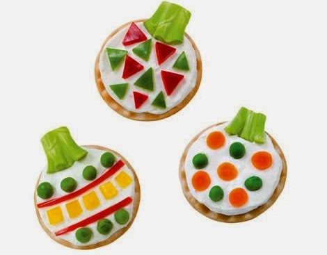 | Galletas saladas, queso de untar y vegetales para decorar. |