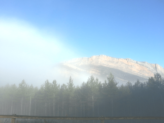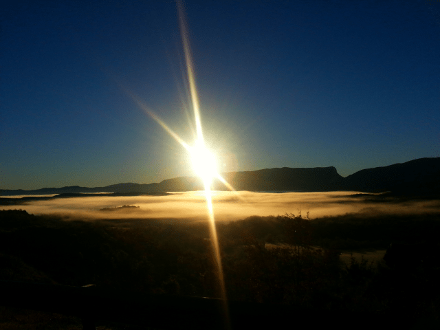 | El día amaneció con las típicas nieblas de esta zona, pero el amanecer viendo el valle cubierto de nubes es precioso. |