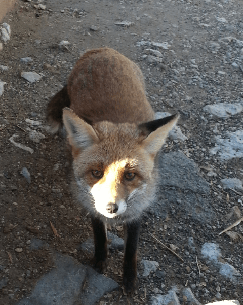 | Y al llegar al final, nos encontramos esta rabosa, acostumbrada a los turistas, que se dejo fotografiar a cambio de comida. |