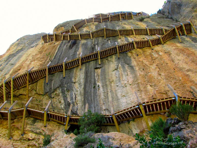 | Camino al canto del congosto, muy bien adecuado y con pasamanos de sirga. |