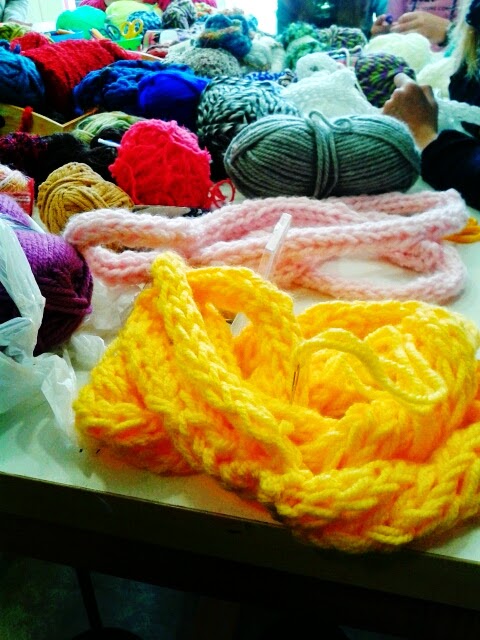 Cuando llegué al curso, pedí agujas; pero ni agujas ni nada, solo lana y dedos.