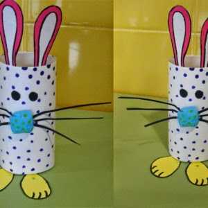 | Con rollos de cartón, cartulina de colores y rotuladores. |