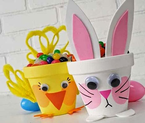 | Macetas decorativas, pintadas y decorada con gomaeva , ojos móviles y «limpiapipas» |