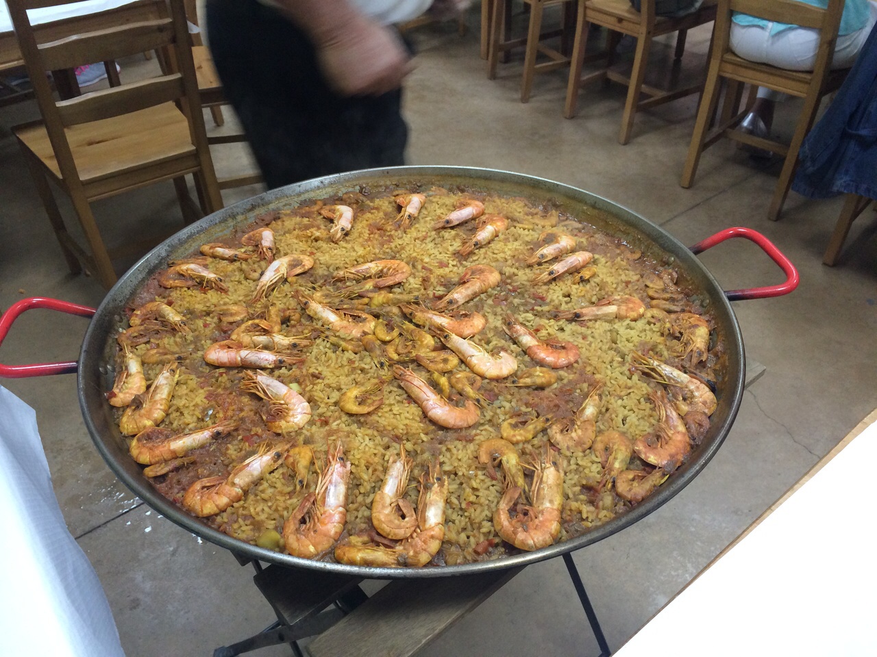 | Nos comimos una paella buenísima, acompañada de ensalada y una parrillada de carne. |