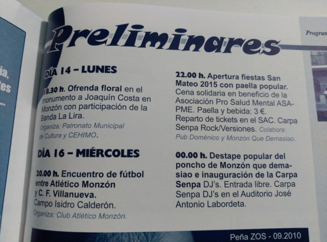 Como os comenté, en la entrada de Septiembre , por aquí, andamos inmersos en la vorágine fiestera dicharachera. Aunque las fiestas no empiezan hasta el jueves, estamos de actos preliminares. Se nota en que esta el pueblo a medio gas, se respira ambiente festivo, estan las calles engalanadas, las carpas montadas, las barras preparadas…etc.