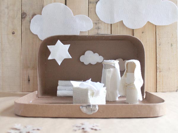 | Belén bonito y eco. Necesitareis rollos de cartón, arpillera, fieltro, cartón, tijeras y silicona. |