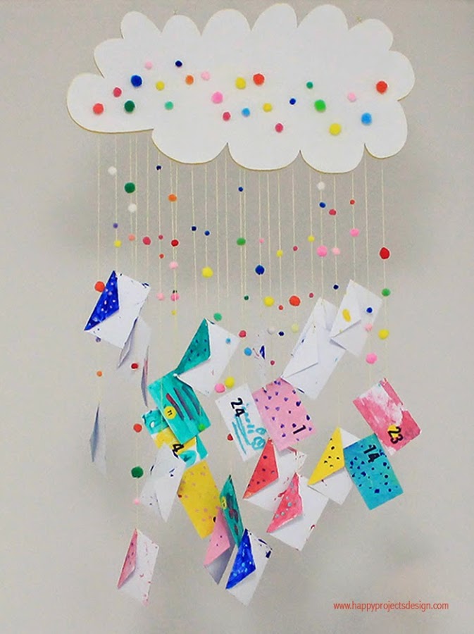 | Calendario de adviento,con sobre, que cuelgan de una nube, bonita idea para clase o para casa. |