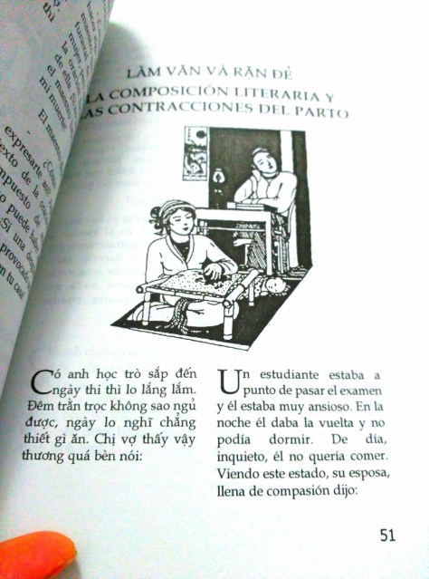 Este libro esta escrito en dos columnas, en la de la izquierda en vietnamita y en la de la derecha la traducción al castellano.