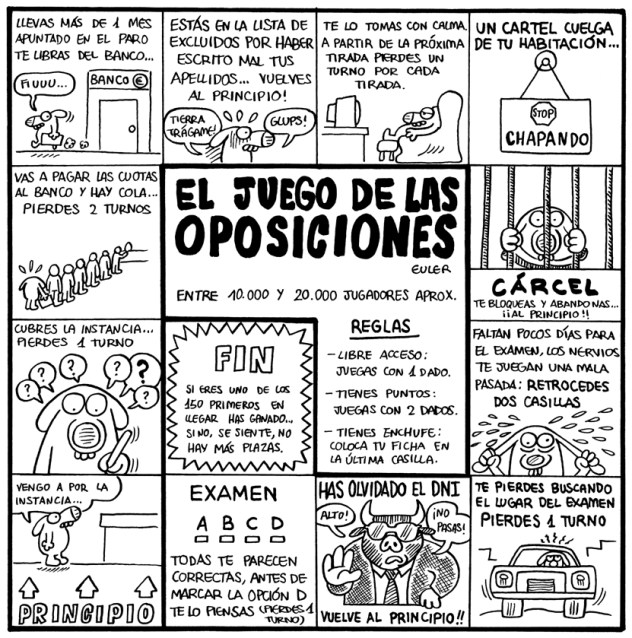 «El Juego de las Oposiciones» , para cuando estáis hasta las orejas y más allá de estudiar,os servirá de relax, para socializar con vuestros compañeros de mesa de la biblioteca, y por supuesto no perder la concentración ni el objetivo ;-):
