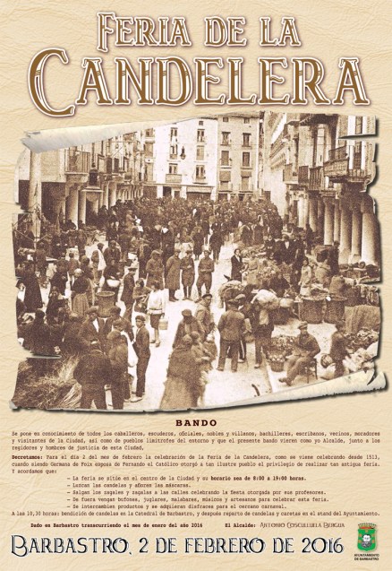 | Mañana mismo, día 2, en Barbastro, el Mercado de la Candelera, 350 puestos repartidos por el centro de la ciudad. Venden desde árboles, semillas, ropa, antigüedades, libros, perfumes, juguetes, bolsos, comida y un largo etcétera. Además, con 18 grados , que tenemos de media por aquí, y este sol primaveral, dará gusto pasear mañana. |