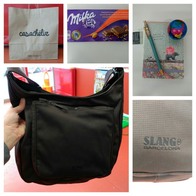 | Mis compañeras de trabajo me regalaron este bolso precioso y perfecto para todos mis cachivaches. Una libreta, con su bolígrafo y un tajador de la bola de mundo y……chocolate!!!!!mmmmmmm!!! Pero lo mejor fue que toda la Escuela Infantil, niños y educadoras incluidas, me cantaran el cumpleaños feliz….un momento de los de no olvidar jamas de los jamases. |