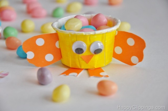 | Vaso-pollito, con cartulina y ojos móviles |