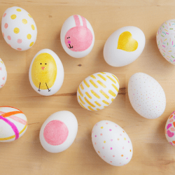 | Huevos Hipster, con gorritos, pajaritas y bigotes. |