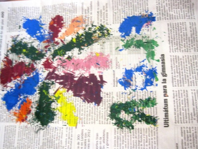 | Retiramos con cuidado el periódico y comprobaremos que el exceso de pintura se ha quedado pegado en el mismo. |