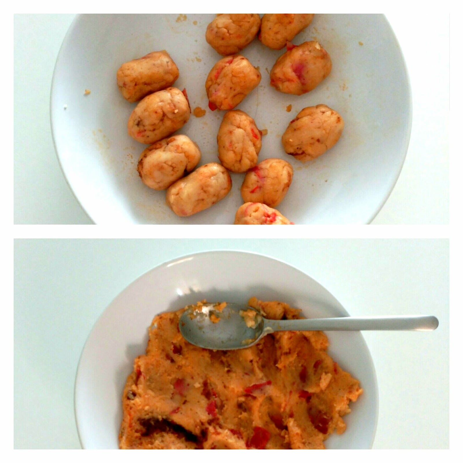 Para darle forma, yo recomiendo, ponernos pan rallado en las manos. Así sera mas fácil manipular la masa.