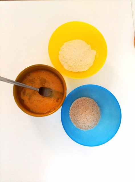 El último paso, es enharinar las croquetas, pasar por huevo y por pan rallado.