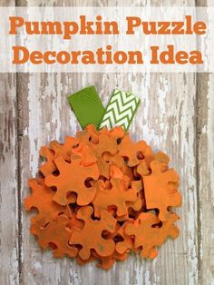 | Con piezas de puzzles rotos y perdidos, podemos hacer esta calabaza, solo tenemos que pintar e ir pegando superponiéndolas. |