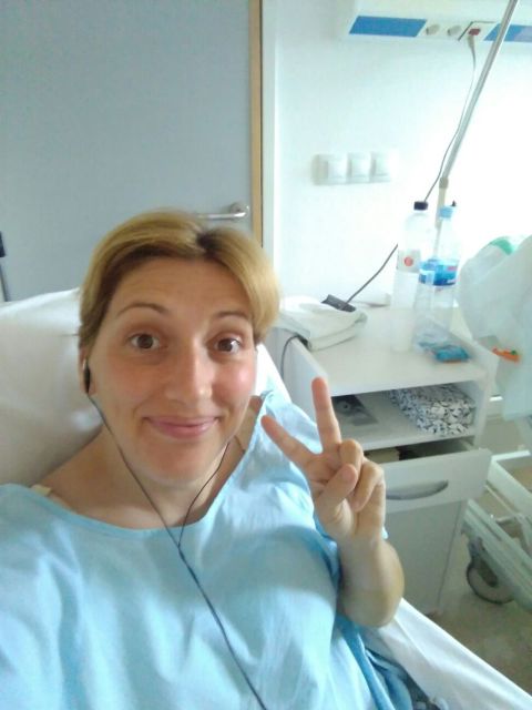 | AGOSTO – Mes de la operación, aquí me tenéis el día después, más contenta que para que. Para empezar porque ya había llegado y pasado la operación, que me daba muchísimo miedo. Para secundar, me encontraba súper bien (algo tendrá que ver toda la morfina que me dieron el día anterior) y pro último porque estaba emocionadísima por todas las muestras de cariño. |