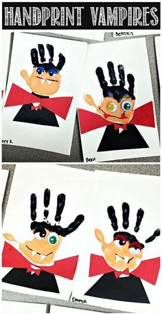 | Vampiros, estampamos la mano, y pegar los diferentes elementos.En primer ciclo, que pinten los elementos y pueden punzonear. En segundo ciclo, que recorten los elementos. |