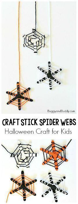 | Y las telas de araña, con depresores y lana, que atamos o fijamos con pegamento.