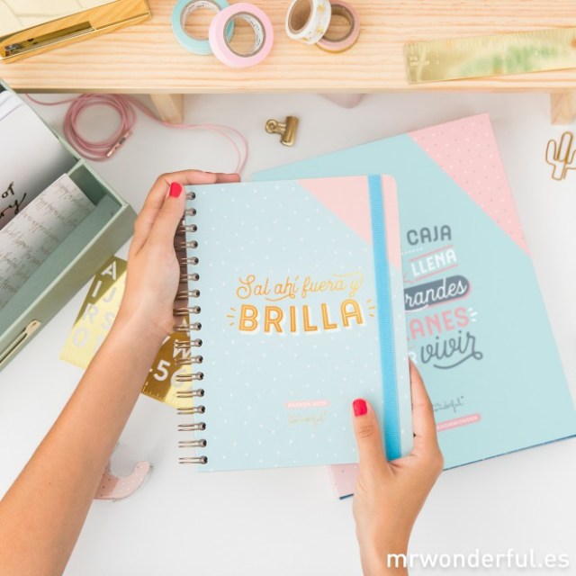 | Y no podía faltar la agenda de Mr Wonderful, que es una de las más vendidas. Yo llevo tres años comprándola, aunque he de reconocer, que este año no me llama tanto la atención….estoy saturada de colorines, pegatinas y frases…. Precio: 16,95 € Podéis verla: AQUÍ |
