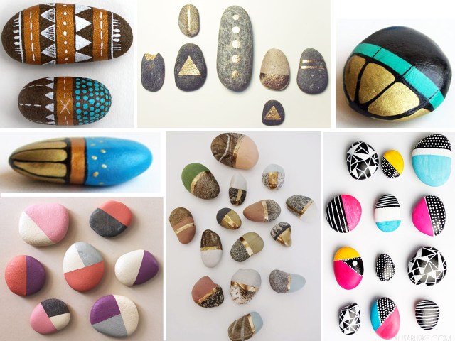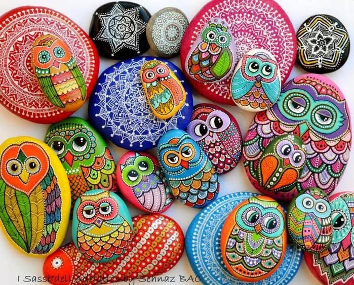 Pintar piedras, con motivos decorativos por el simple hecho de pintar, es divertido y entretenido, os dejo algunas ideas: