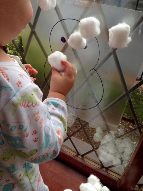 | El típico juego de «ponle la cola al burro», pero con algodón y un muñeco de nieve. |