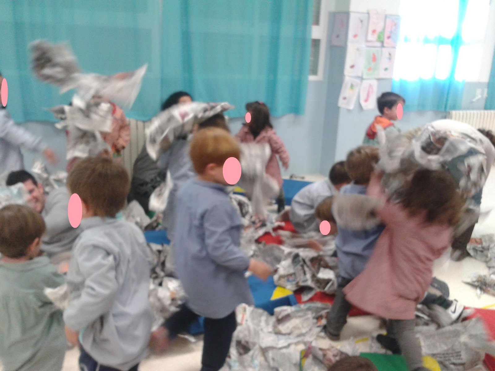 | Batalla de bolas de nieve – Con hojas de periódico. |