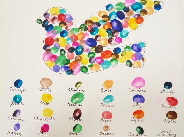 | Una actividad grupal, para hacer con los más pequeños. Huella dactilar, de diferentes colores, para que se identifiquen. |