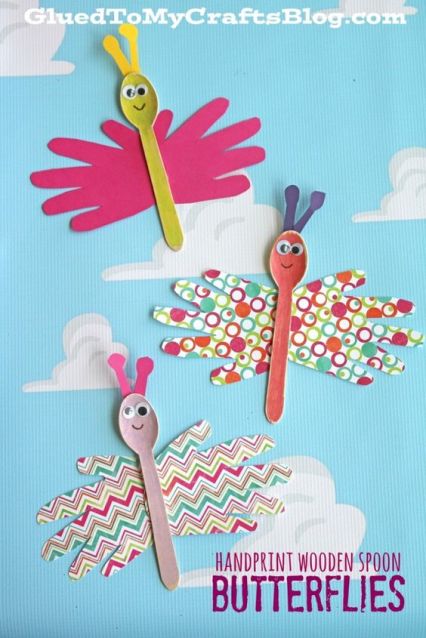 | Para hacer con los más pequeños, con cuchara de plástico y las alas con cartulina de colores. |