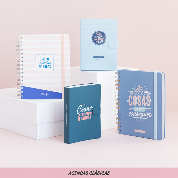 | Clásicas entre los clásicos , tenemos, como todos los años, las agendas de MR WONDERFUL , que podéis comprar por un precio de entre 12,95 a 18,95 euros. |