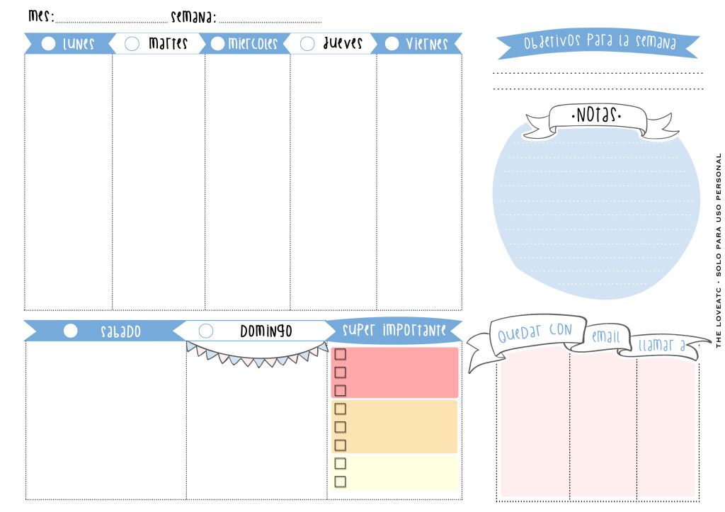 En esta semana de planificadores y agendas varias, os traigo una tercera opción, el planificador semanal.