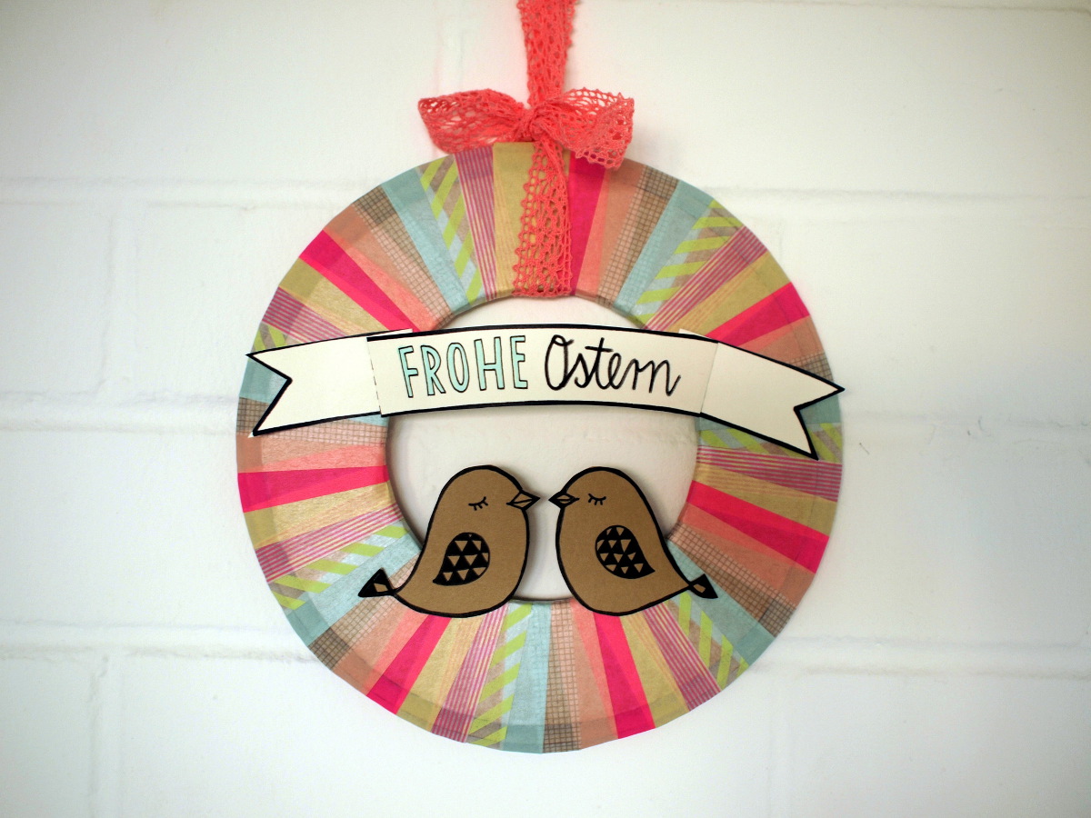 | Corona decorativa, que podeís hacer con globos de agua de colores, reciclando capsulas de la nespresso, dándoles forma, o con hueveras de cartón pintadas. |