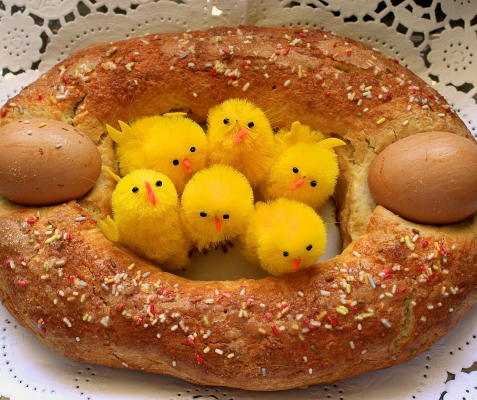 | MONA DE PASCUA, bizcocho de harina, huevo, azúcar y sal, que simboliza el fin de la cuaresma. Tradicionalmente se presentaba acompañado de huevos y pollitos, pero la tradición ha ido derivando, y los huevos, pollitos y mona en si, ahora son de chocolate o de turrón, de helado…etc. |
