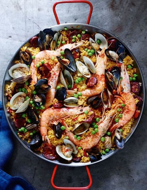 | Comida de domingo veraniego por excelencia, paella ( o arroz con cosas, porque la verdadera paella valenciana no lleva ni guisantes, ni chorizo) |