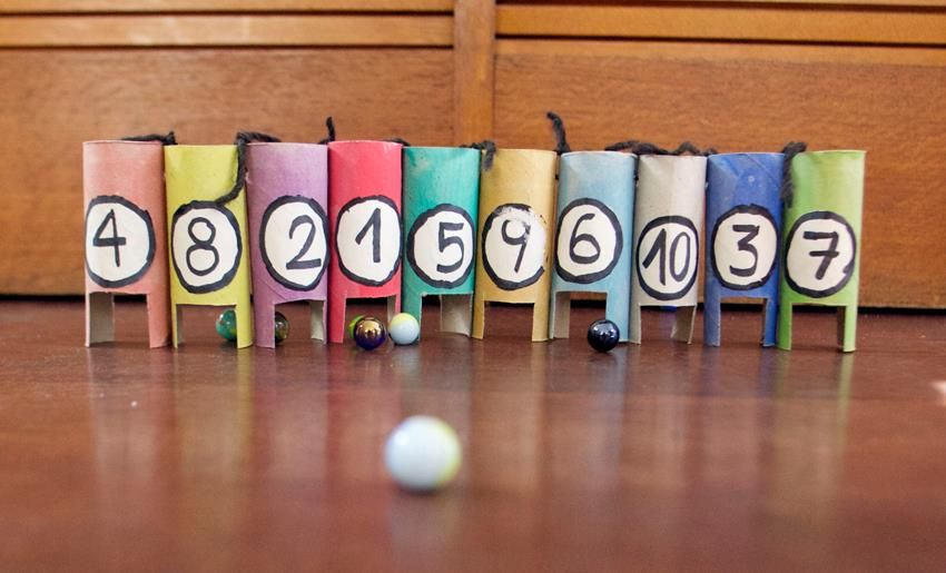 | No podía faltar, un juego tipo bolos, pero con tubos de cartón! |